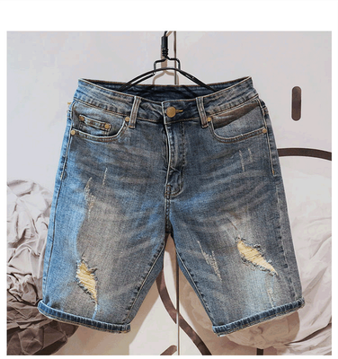 Men S Straight Slim Short Jeans Casual Pants Ripped Skinny Denim Shorts Trousers Ebay